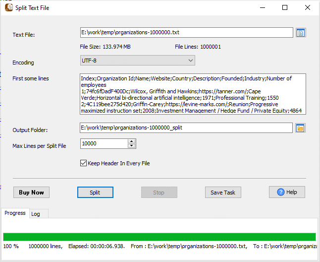 Try Withdata Big Text File Splitter, a desktop TXT splitter for Windows, MacOS, and Linux, Split large TXT file, East and Fast.