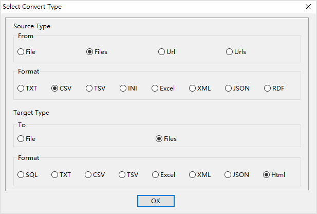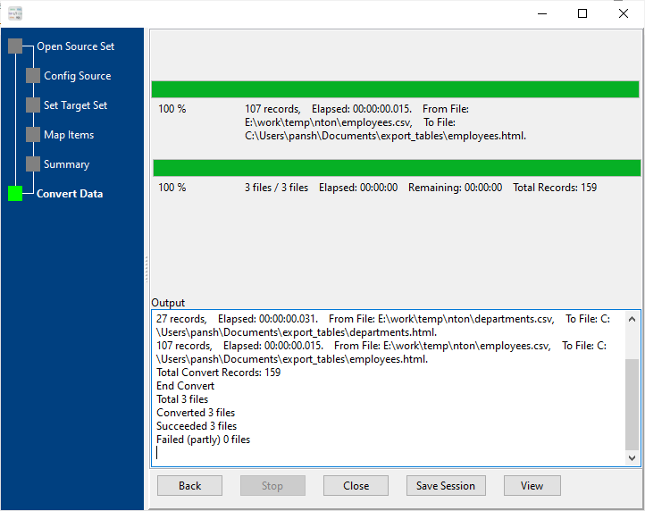 Select source CSV files -> Set HTML files -> Convert CSV files to HTML tables