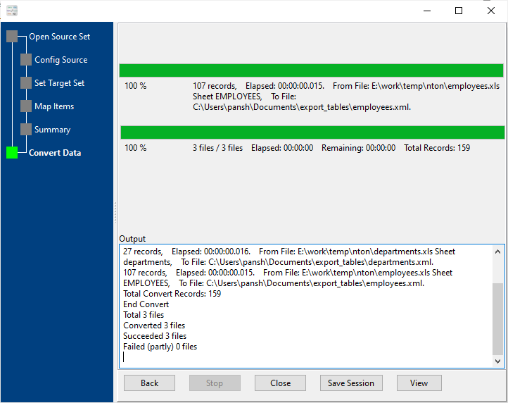Select source Excel files -> Set XML files -> Convert Excel files to XML files