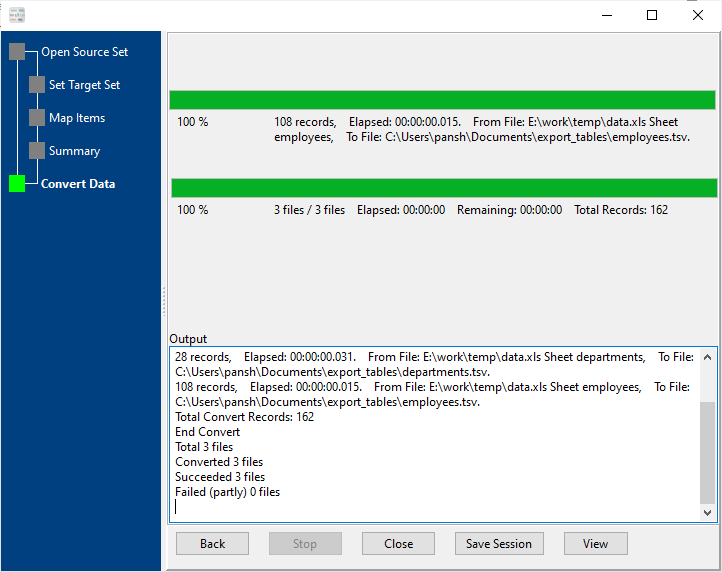 - Save session and create .bat (Windows) or .sh (Linux/macOS) file for “Excel sheet to TSV” conversion.