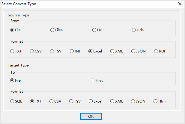 Choose Excel file -> Set TXT file -> Convert Excel to TXT