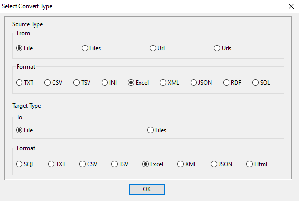 Choose source Excel file -> Select Excel columns -> Filter Excel columns