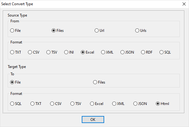 Select source Excel files -> Set HTML file -> Merge multiple Excel files into one HTML table