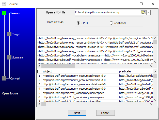 1. Open a RDF N-Quads file.