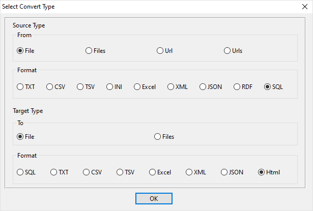 Choose SQL file -> Set HTML file -> Convert SQL to HTML table