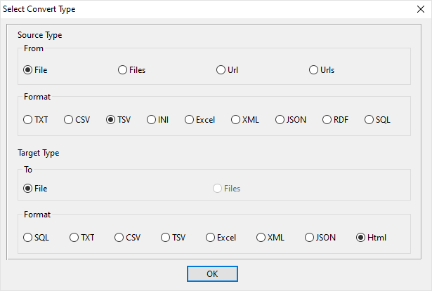 Choose TSV file -> Set HTML file -> Convert TSV to HTML table