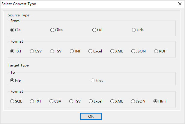 Select From “File” “TXT” To “File” “Html”.