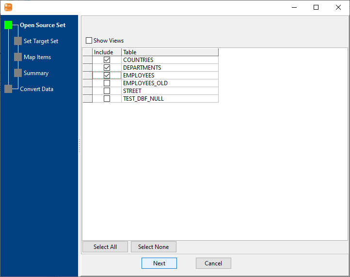 Import data from multiple DBF tables to 1 MongoDB collection - Task Window