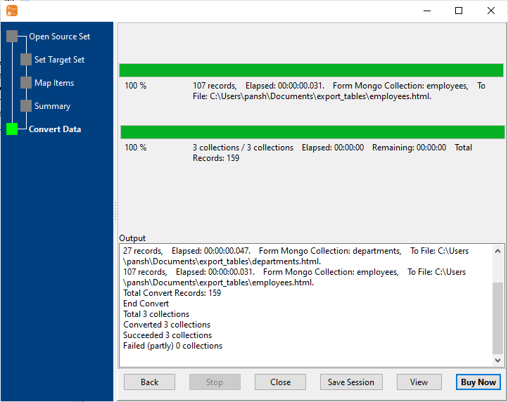 5. Batch export MongoDB Atlas collections to HTML tables.