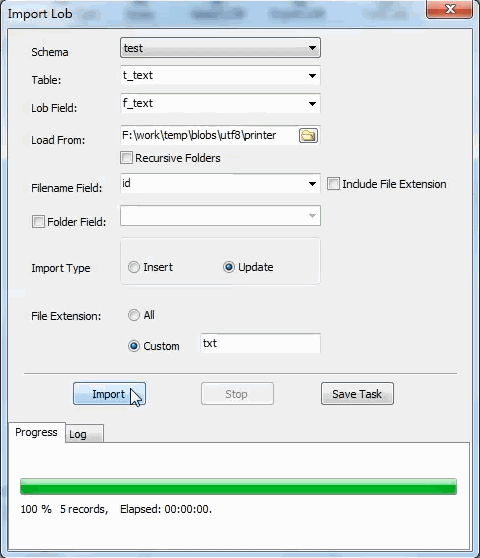 Click “Start New Task – Import LOB From Files” at task dialog.