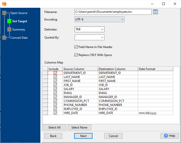 2. Set TSV file options.