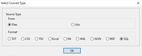 Click “Wizard – N Files To 1 Table” at task dialog.