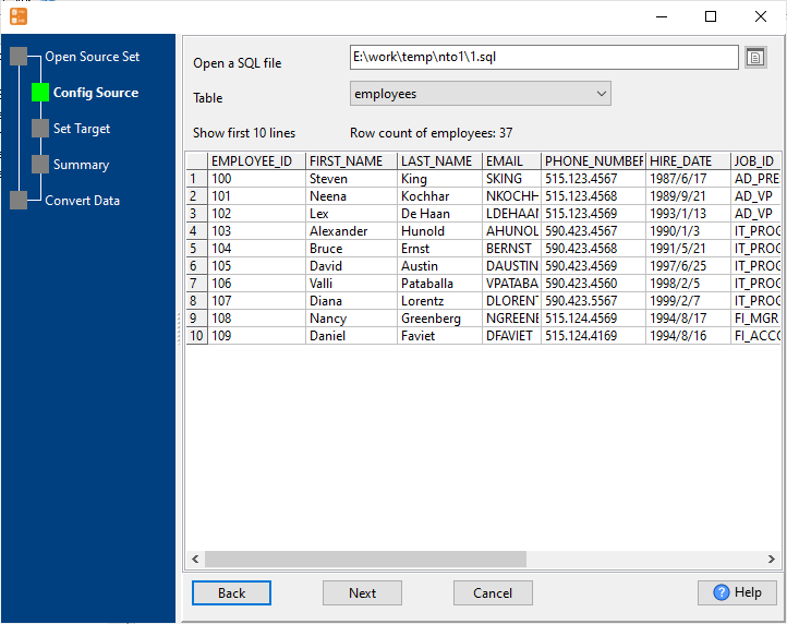 2. Config first SQL file importing options.