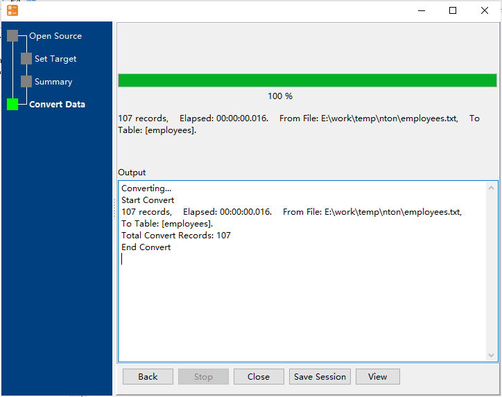 - Save session and create .bat (Windows) or .sh (Linux/macOS) file for “TXT to DB2” conversion.