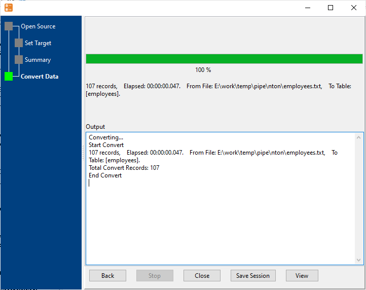 - Save session and create .bat (Windows) or .sh (Linux/macOS) file for “TXT to SQL Server” conversion.