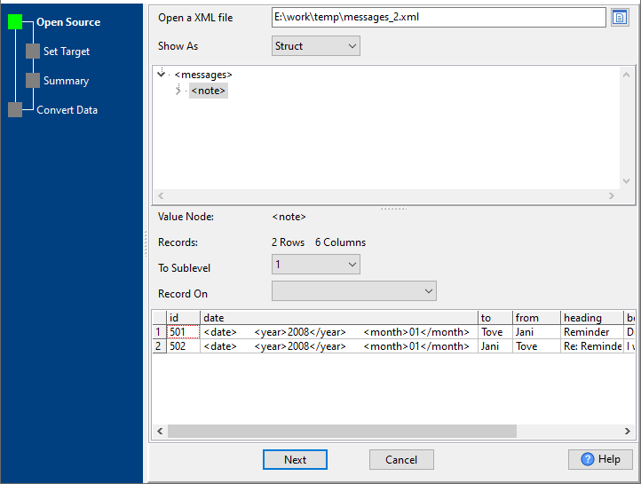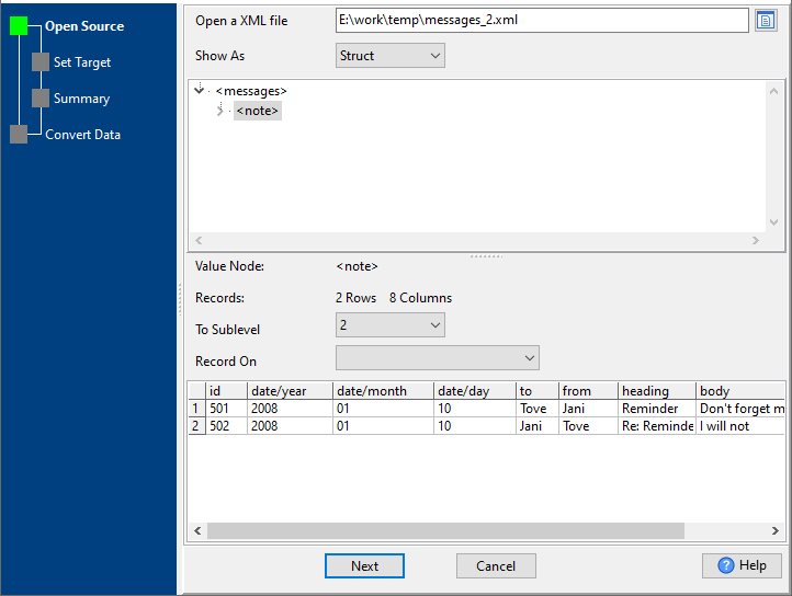 2) Set Sublevel=2, "date" is seperated to 3 columns, "date/year", "date/month", and "date/day".