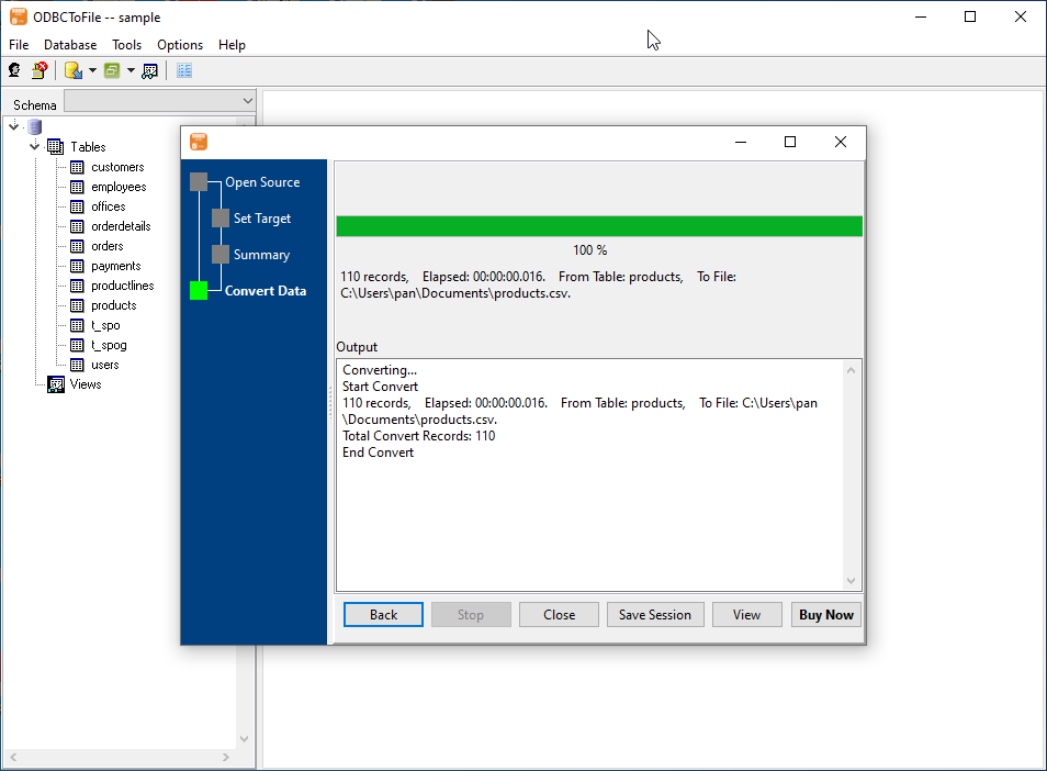 ODBCToFile is a data conversion software that helps database user to export ODBC database data to CSV (TXT), SQL, xml, json, html, and Excel.